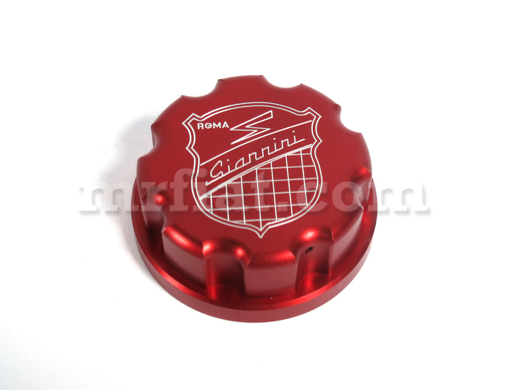 Abarth red aluminum fuel tank cap for all Fiat 500 models.