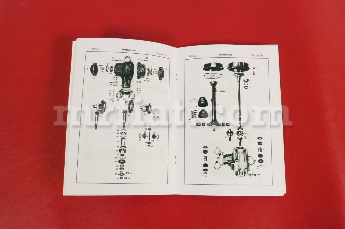 1952 edition german illustrated parts catalogue for Mercedes 220 models. Made in Italy.