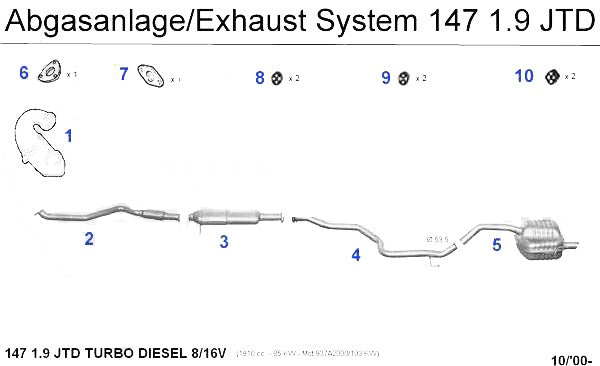 Center muffler for Alfa Romeo 147 1.9cc JTD models. #4 in corresponding diagram.