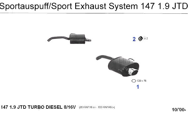 Sports muffler tailpipe oval chrome plated 120x76 mm for Alfa Romeo 147/1.9 JTD models. #1 in corresponding diagram.