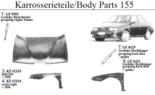 Gas spring for boot lid for Alfa Romeo 155 models. #7 in corresponding diagram.