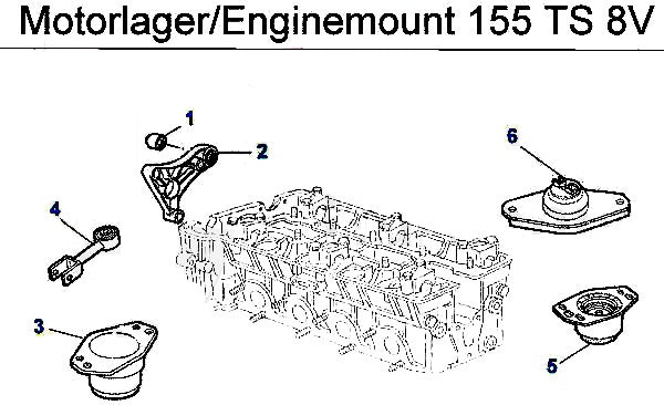 Engine mount rear for Alfa Romeo 155 models. #6 in corresponding diagram.