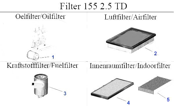 Oil filter for Alfa Romeo 155 models. #1 in corresponding diagram.