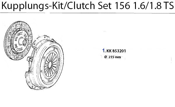 Clutch kit for Alfa Romeo 156 1.6cc/1.8cc TS 16v models. #1 in corresponding diagram.