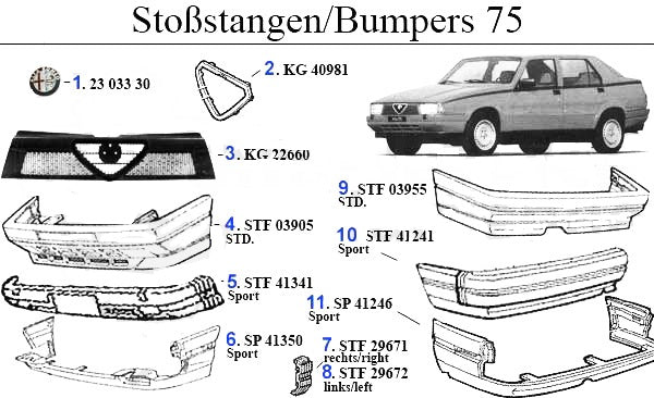 Alfa emblem 75mm metal adhesive bonding for Alfa Romeo 75 models. #1 in corresponding diagram.