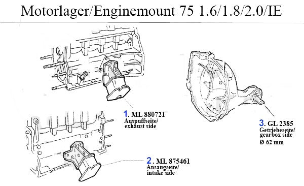 Engine mount right for Alfa Romeo 75 models. #2 in corresponding diagram.