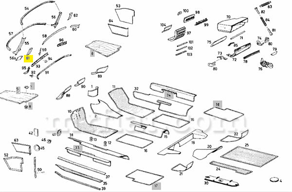 Wall pillar cap bottom left for Mercedes 220 S Coupe models. Made in Italy.