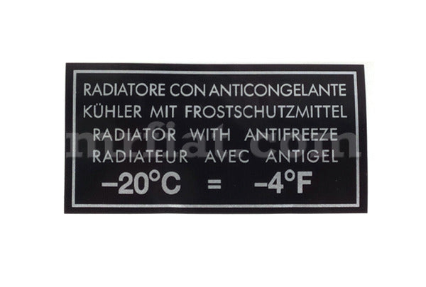 Heater tank transfer sticker for Fiat Dino 2000 and 2400 models.