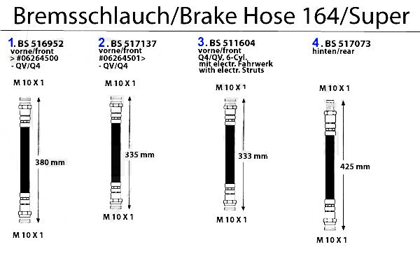 Front brake hose for Alfa Romeo 164 models. #1 in corresponding diagram.