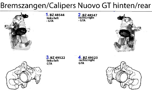 Brake calipper rear right for Alfa Romeo Nuovo GT models. #2 in corresponding diagram.