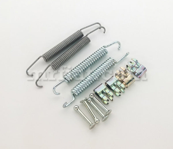 Complete brake shoes fixing kit for Fiat 126 P 127 128 Lancia A112 models. Fiat part # 5952867 - 7672967 - 5952868 - 4194413 - 4379664 - 4162202 - 4460028