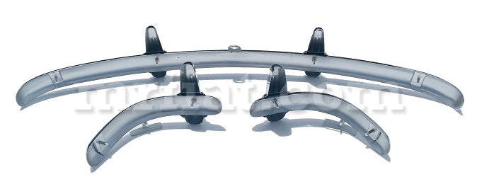 Bumper kit for Jowett Jupiter models from 1950-54. It consists of one front bumper, 2 rear bumpers and 4 over-riders. The bumpers are stainless steel and hand finished. Stainless steel was chosen for the following reasons: 1 never corrodes rust proofgrade304/ 1.4301, lifetime anti-corrosion warranty 2 in case of dent or damage unlike chrome plated steel it does not require stripping and rechroming 3 stainless steel allows for easy repair and repolishing in the hand of a professional 4 it's a lot tougher than chrome plated grills. The bumpers are finished to a high mirror polish, just like chrome. The back of bumpers are acid etch primed and painted with ICI two pack paint in a black tone. Delivery takes 2-3 weeks.