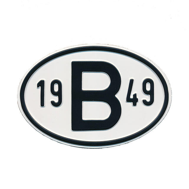 Sign B 1949 for Beetle, Bus T1, Karmann Ghia 14, Porsche models.