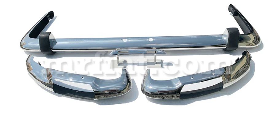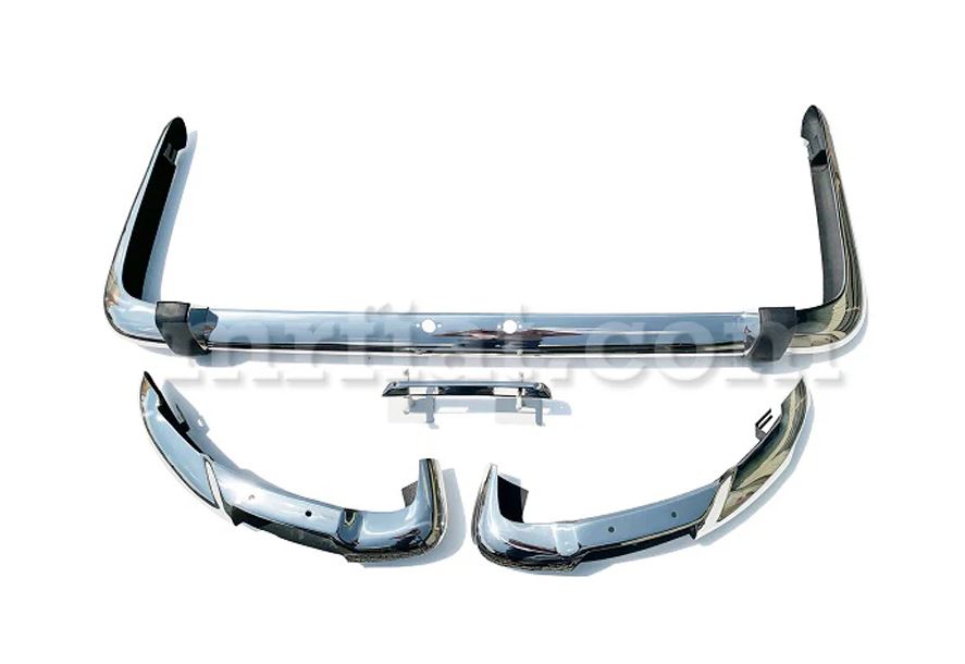 Bumper kit for Ferrari 365 GT 2 2 models from 1967-71. The kit consists of two front bumpers, one rear bumper in 3 parts, 2 overriders, 2 overrider rubbers, and one license plate light holder.