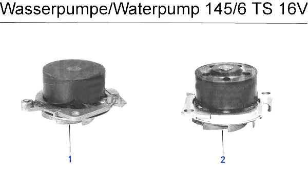 Water pump for Alfa Romeo 145/6 1.6cc IE 16V TS models. #2 in corresponding diagram.