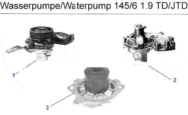 Water pump for Alfa Romeo 145/6 1.9cc TD models. #2 in corresponding diagram.