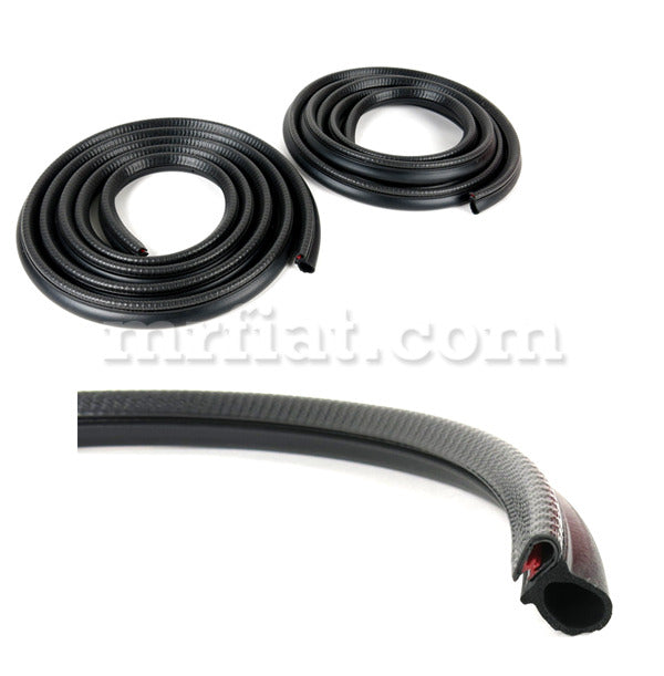 Inner door opening gasket set for Fiat Dino 2000 and 2400 Spider models. This strip joins the rubber hollow profile to the door seal. The set is for both doors. Length: 2.5 m.