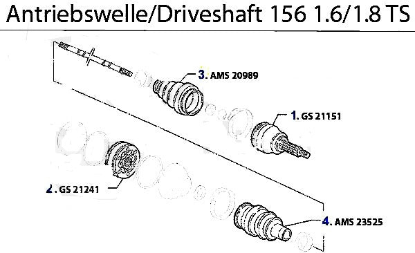 Inner drive shaft joint for Alfa Romeo 156 1.6cc/2.0cc TS 16v models. #2 in corresponding diagram.