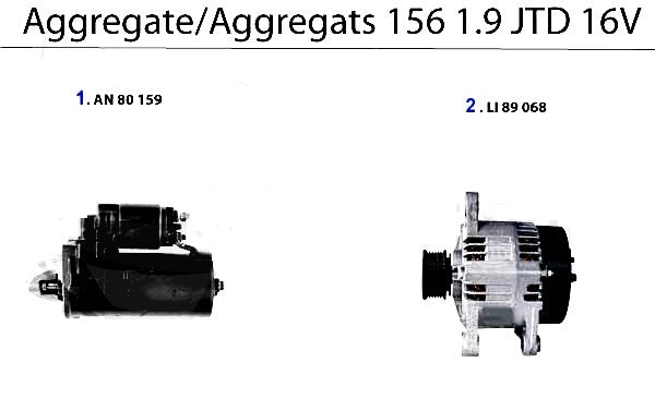 Starter motor for Alfa Romeo 156 1.9cc JTD 16v models. #1 in corresponding diagram.