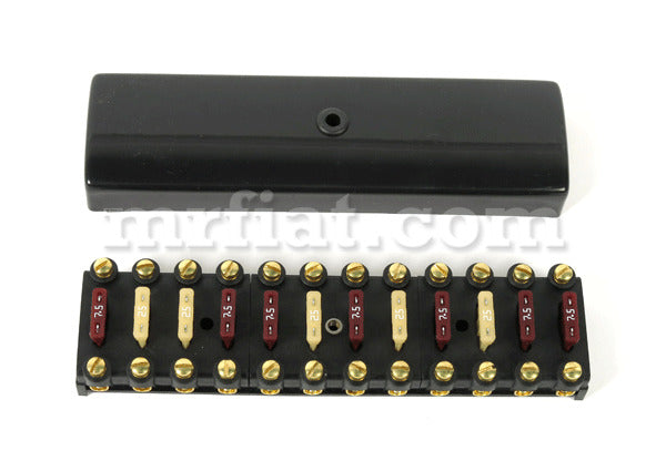 ReFuze replacement fuse panel set for all Porsche 356 models from 1950-65. The set consists of one twelve position panel with its original protective cover. The panel has internally ganged contacts identical to the OEM configuration. With its exact fit and no wiring changes required, this ReFuze 356 panel can be easily swapped out for a return to originality. The plastic housing is molded using DuPont Rynite 530 automotive grade resin formulated to stand up to the harsh environment under the hood. Rynite 530 is approved for use by the Big Three automakers. The brass contacts are formed of 464 Naval brass which has superior corrosion resistance and is used when resistance to exposure to the elements is required. Use of these materials produces a high quality panel, molded, formed and assembled in the US.