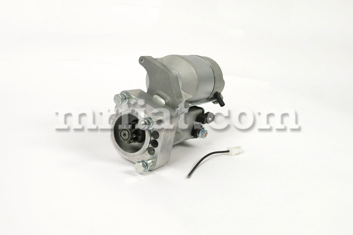 High torque 2 and 3 bolt fixing 9 tooth starter motor for Alfa Romeo Spider 1.3, 1.6, 1.75, and 2.0105/115 chassismodels from 1970-93 and Alfa Romeo 75 Milano 1.3, 1.6, 1.75, and 2.0 models. It weighs 3.5 kg, is supplied a with terminal fitting kit, and is based on a 1.4kW Denso starter motor from 1.3 to 2 liters which has been modified to suit this particular application. Two different starters were fitted, one with 8 teeth on the pinion, the other with 9 teeth. Every Denso starter motor mounts in a unique circular stepped register which enables it to be spun 360 degrees on its own axis with ease giving the unit an infinite number of mounting positions. Please note, if you require a multi-drilled end plate to enable the motor to be mounted in different locations please let us know at the time of ordering and we can supply these at no additional cost.