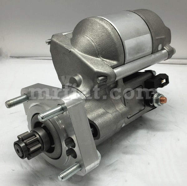 High torque starter motor for Alfa Romeo 3000 V8 models. It weighs 5 kg, is supplied with a terminal fitting kit, and is based on a Denso 1.4kW starter motor which has been modified to suit this particular application. This starter motor is 100brand new and built to the highest standards to withstand the rigors of all forms of motoring including Road, Race and Rallying. Each unit is a direct replacement for the original starter motor and weighs less than the original with 2 - 3 time the power output. Every Denso starter motor mounts in a unique circular stepped register which enables it to be spun 360 degrees on its own axis with ease giving the unit an infinite number of mounting positions. Please note, if you require a multi-drilled end plate to enable the motor to be mounted in different locations please let us know at the time of ordering and we can supply these at no additional cost.