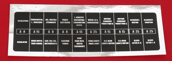 Magneti marelli light fuse box sticker set 10 x b for Ferrari 208 and 308 GT/4 GTB GTS models. It is used for all other electrical equipment.
