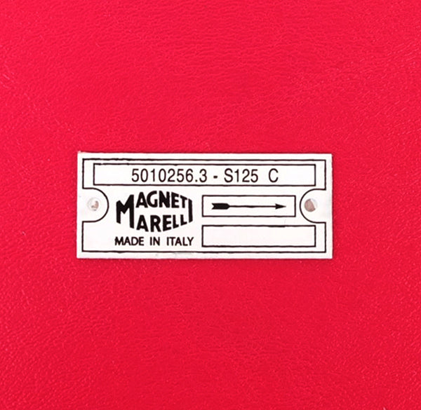 Black Marelli distributor ID plate for Ferrari 208 and 308 GT/4 GTB GTS models.