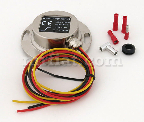 Complete electronic ignition distributor for Citroen 2CV4, 2CV6, DYANE, AMI, and Mehari models. Item # 1232CV This electronic distributor is designed for all 2CV's and derivatives with a A79/1, M28 or M28/1 engine. It is a micro processor controlled device, that replaces all the mechanical parts of the conventional system, like points, cam, and centrifugal weights. The 1232CV is designed for the stock black coil, and is intended for 12 Volt systems only. The ease of installation, and the outstanding quality has attracted thousands of happy 2CV-drivers, all over the world. The main benefits are: - better starting - better fuel consumption - smoother running, better emissions - more torque especially in the lower rev's- no maintenance, EVER again. The ignition-system in a classic car is often the source of many problems. After many years the mechanical system is worn, and replacement of the points with an optical or magnetic setup, does not make up for wear in the advance-mechanism, the shaft and bearings etc. Well, 123ignition is different. It comes in a housing, that exactly looks like its mechanical counterpart on the outside, but that houses a lot of high-tech on the inside. A 123 ignition keeps the looks under the bonnet 'original', but makes the engine spin like a Japanese sewing-machine. Moreover, you don't have to sacrifice your mechanical distributor.