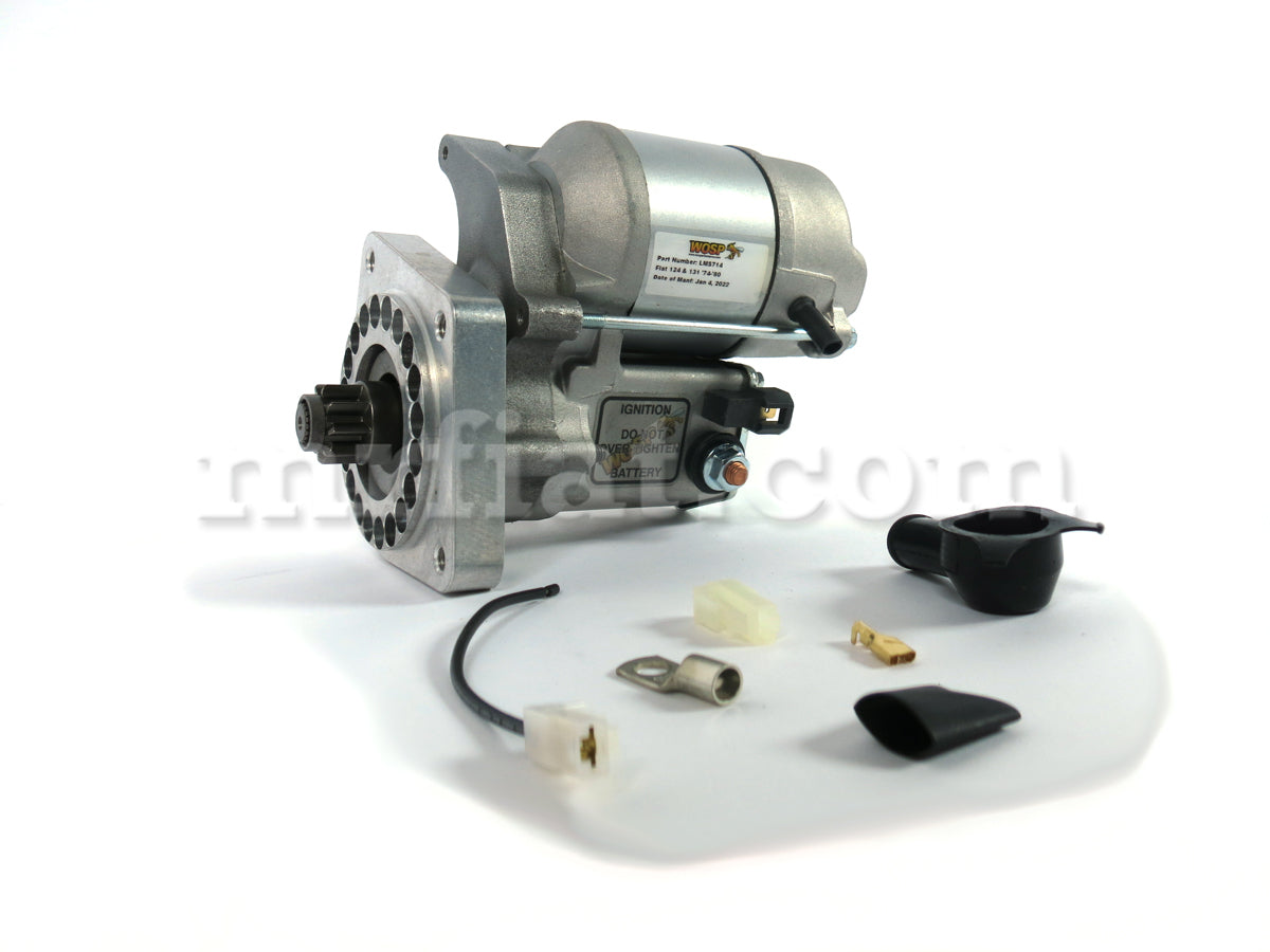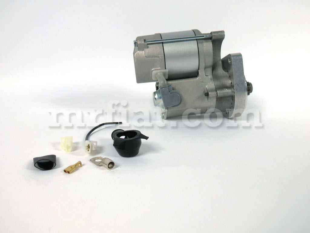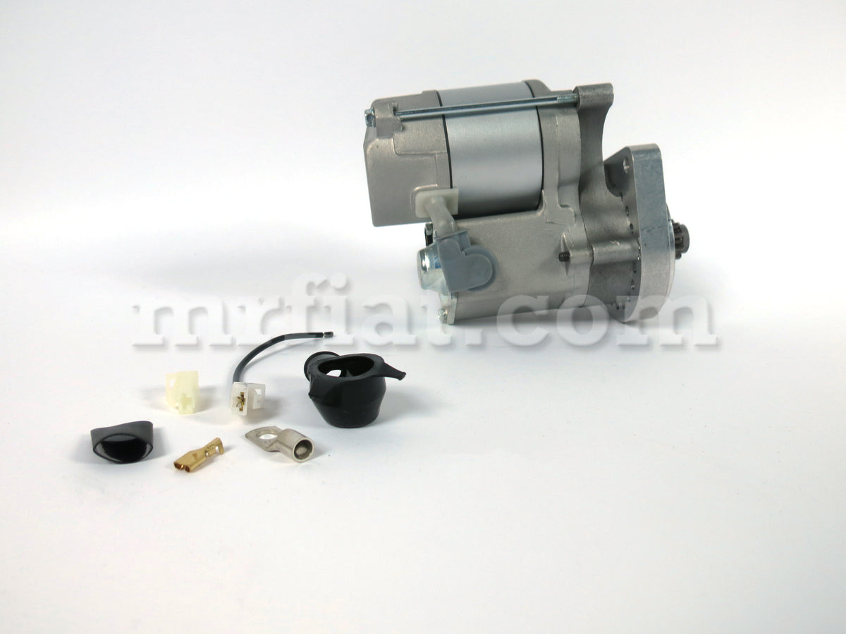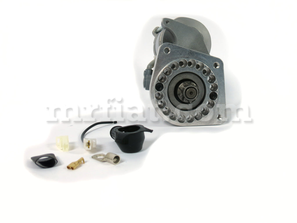 High torque starter motor for Fiat 124 1200 Berlina from 1966-75, Fiat 124 1400 Special from 1968-75, and Fiat 131 1300 from 1974-80 models. It weighs 5 kg, is supplied with a terminal fitting kit, and is based on a 1.4kW Denso starter motor which has been modified to suit this particular application. This starter motor is 100brand new and is built to the highest standards to withstand the rigors of all forms of motoring including Road, Race and Rallying. Each unit is a direct replacement for the original starter motor and weighs less than the original with 2 - 3 time the power output. Every Denso starter motor mounts in a unique circular stepped register which enables it to be spun 360 degrees on its own axis with ease giving the unit an infinite number of mounting positions. Please note, if you require a multi-drilled end plate to enable the motor to be mounted in different locations please let us know at the time of ordering and we can supply these at no additional cost. Photo for illustration purpose only.