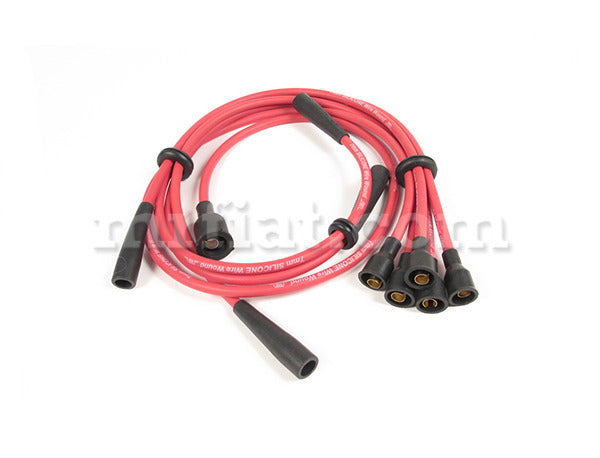 Red spark plug cables set for Fiat 124 Coupe Spider 1600 1800 2000 models. Fits models with distributor on cylinder head.