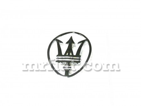 OEM tridente front emblem for Maserati produced from 1994-95 models. This emblem is 60 mm wide and 89mm tall with two threaded screws with nuts on the back which are vertically spaced 47mm apart. Made in Italy