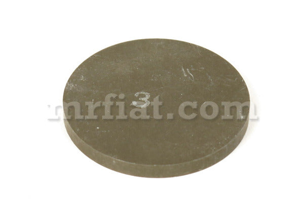 Valve tappet shim for Fiat 3.00 models. Fits Fiat 124 - Fiat 125 - Fiat 131 - Fiat 132, Fiat 128 - Fiat X1/9, Fiat 130 - Fiat Dino 2400. diameter 33 mm - thickness 3.00 mm.