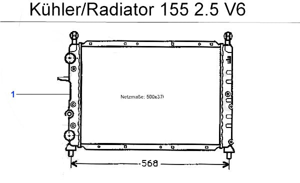 Radiator for Alfa Romeo 155 2.5cc V6 models. #1 in corresponding diagram.