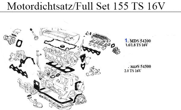 Engine gasket set110kw for Alfa Romeo 155 2.0cc TS models. #2 in corresponding diagram.