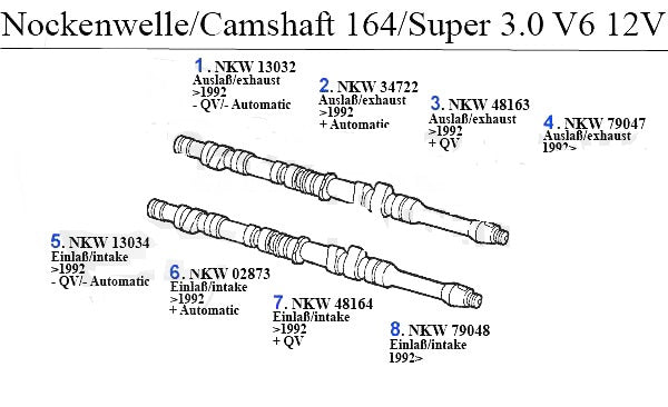 Camshaft right for Alfa Romeo 164 models. #4 in corresponding diagram.