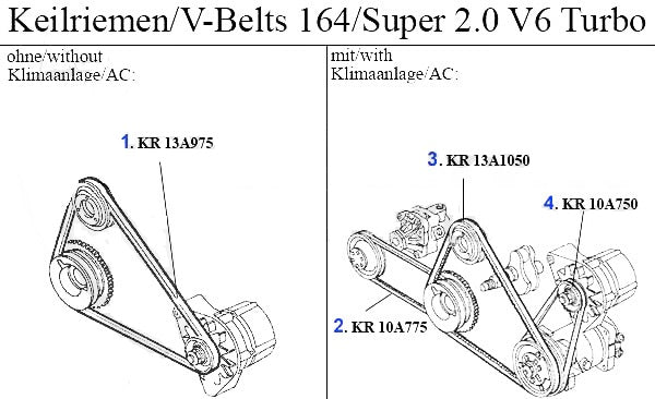 Belt 13mm x 1050mm for Alfa Romeo 164 models. #3 in corresponding diagram.