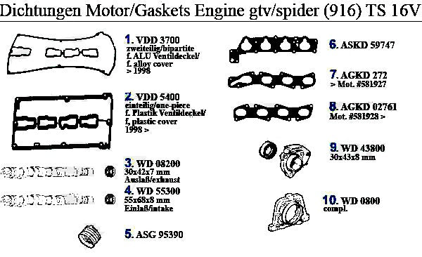 Cam cover gasket for plastic cover for Alfa Romeo GTV/Spider (916) models. #2 in corresponding diagram.