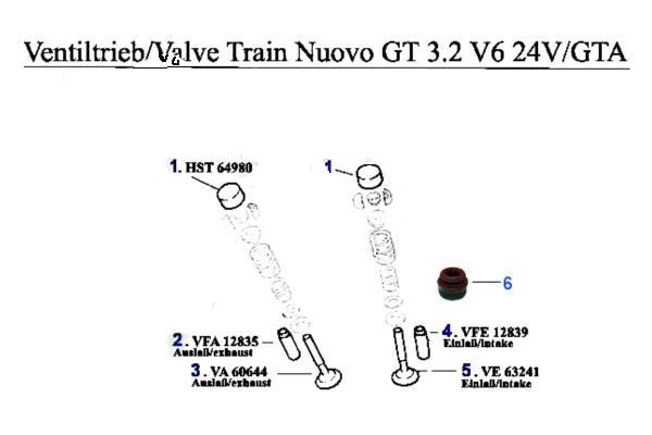 Valve stem seal for Alfa Romeo Nuovo GT 2.5cc/3.0cc V6 models. #6 in corresponding diagram.