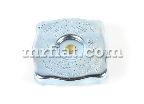 Square radiator cap for Alfa Romeo Spider Duetto, 1750 from 1966-69 and Spider from 1971-89 models with an overflow container.