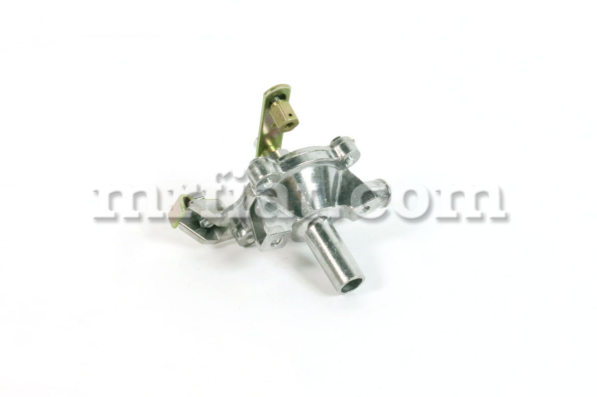 Aluminum heater valve housing for Alfa Romeo Giulietta Sprint models without air conditioning. Made with original OEM tooling in Italy.
