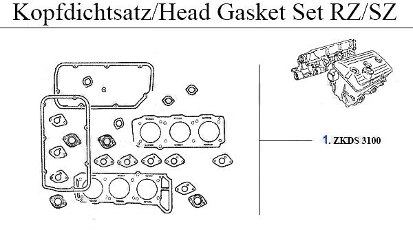 Head gasket set for Alfa Romeo RZ/SZ models. #1 in corresponding diagram.