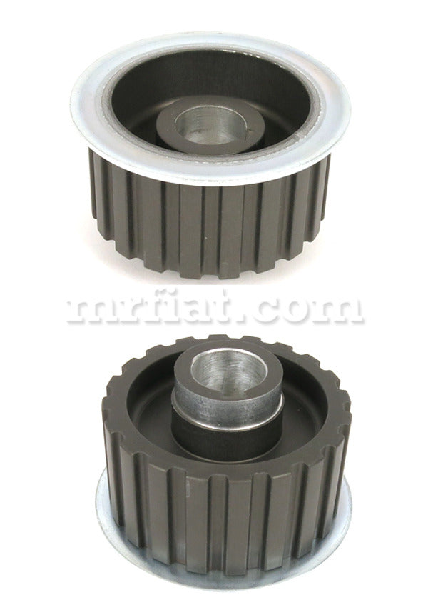 Drive pulley for Ferrari 208 Turbo, 308 GTBi, GTSi, QV and 328 models. It is a new production of high tensile aluminum. Pulley surface to timing belt is hard-coated for wear protection. The drive wheels have about three times the mileage of the camshaft sprockets. Therefore, special care is required. If the cam drive pulleys are replaced, the condition of the drive pulley should be very carefully checked.