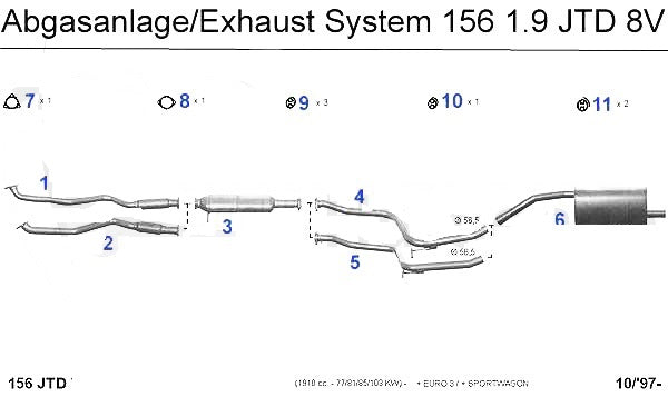 Center pipe for Alfa Romeo 156 1.9cc JTD models. #5 in corresponding diagram.