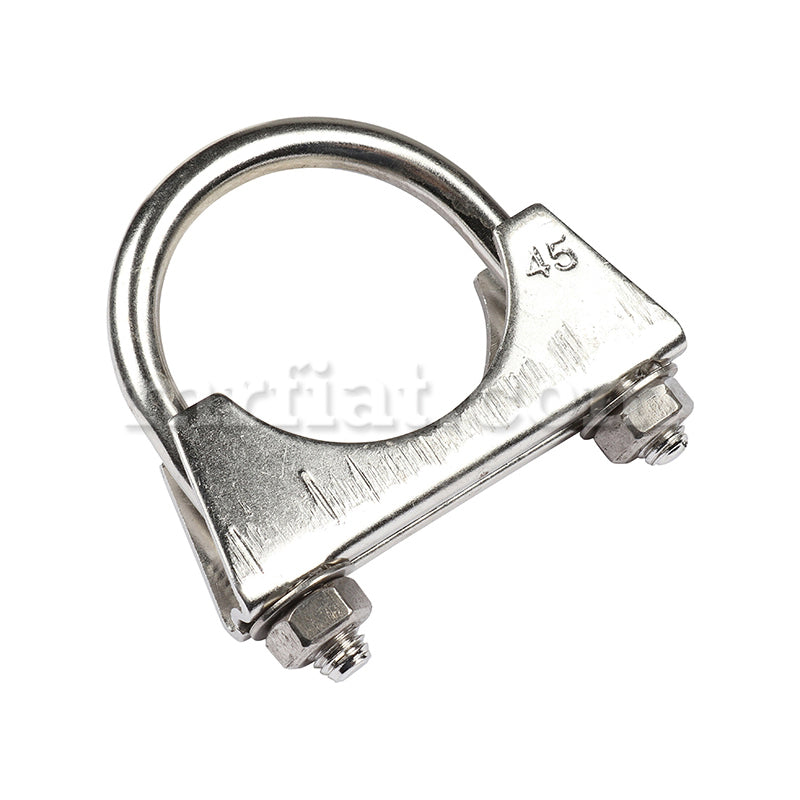 Stainless steel exhaust clamp for Volvo Amazon P220 models from 1961-69, P120 models from 1959-71, and P130 models from 1959-71. Diameter: 45 mm