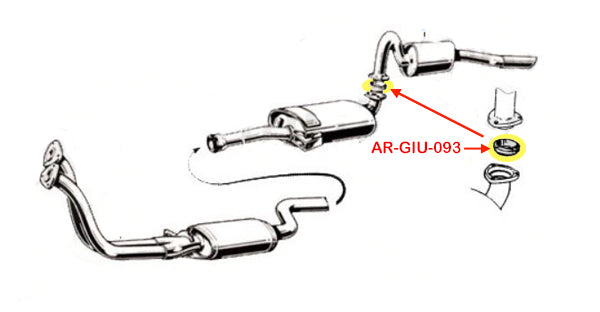 Center exhaust to tail pipe sealing ring for Alfa Romeo Giulia SedanChassis 105/115models. Inner diameter:51 mm.Outer diameter: 65 mm