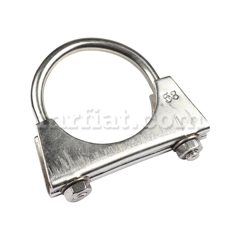 Stainless steel exhaust clamp for Volvo PV444, PV445, and PV544 models from 1943-67. Diameter: 58 mm