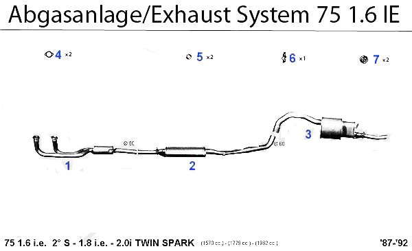 Rear silencer without catalyzer for Alfa Romeo 75 models. #3 in corresponding diagram.