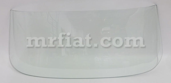 OEM windshield for Fiat 1200 1500 Spider models. Center height is 46.3 cm. production stress relieved windshield from Scandinavia with sanded edges, original thickness, and old style edge markings.