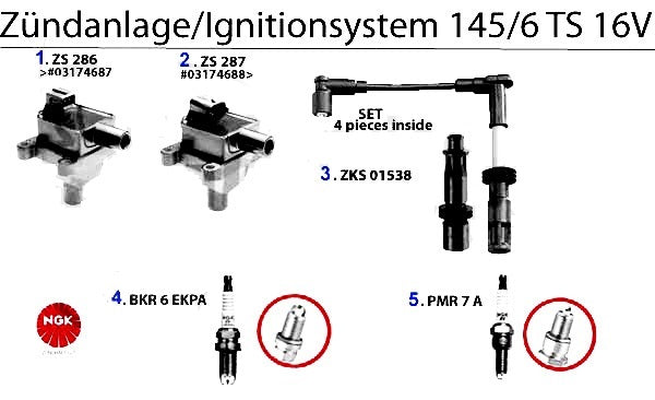 Ignition coil for Alfa Romeo 145/6 models. #1 in corresponding diagram.